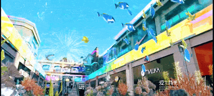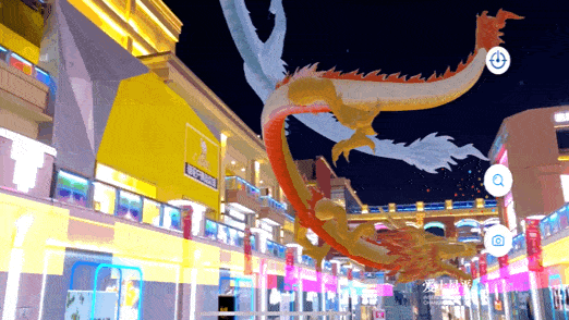 2022年1月,北京昌平區(qū)文旅商圈AR藝術(shù)嘉年華在北京樂多港萬達(dá)廣場啟動;顒邮遣絽^(qū)聯(lián)合頭部企業(yè)華為河圖,利用高精度地圖構(gòu)建、高效空間計算能力,通過AR技術(shù)構(gòu)建3D虛擬的數(shù)字沉浸式世界。游客可通過“華為AR地圖”及“星光巨塔”APP在北京樂多港萬達(dá)廣場內(nèi)體驗、AR實景導(dǎo)航、全息信息展示、虛實融合拍照以及多人AR互動對戰(zhàn)等豐富多彩的沉浸娛樂體驗世界。置身于花路之中,實時導(dǎo)引,抬眼就能一眼明晰懸浮于路線的標(biāo)牌,沿著指示便可到達(dá)目的地。中心步道兩側(cè)布置時尚與科技相結(jié)合的虛擬元素,打造虛實融合的“科技時尚主題世界”;中心步道空中布置瑞龍、錦鯉、游艇、熱氣球和鯨魚等虛擬元素,打造虛實融合的“文化休閑主題世界”。在下沉廣場布置水草、巖石、魚群和鯊魚等海底世界虛擬元素,神秘的海洋休閑文化體驗。下沉廣場以冰雪場景為主題,結(jié)合物理空間進(jìn)行背景,空間中布置U型池、大跳臺和空中技巧等冬季體育項目虛擬動畫內(nèi)容。